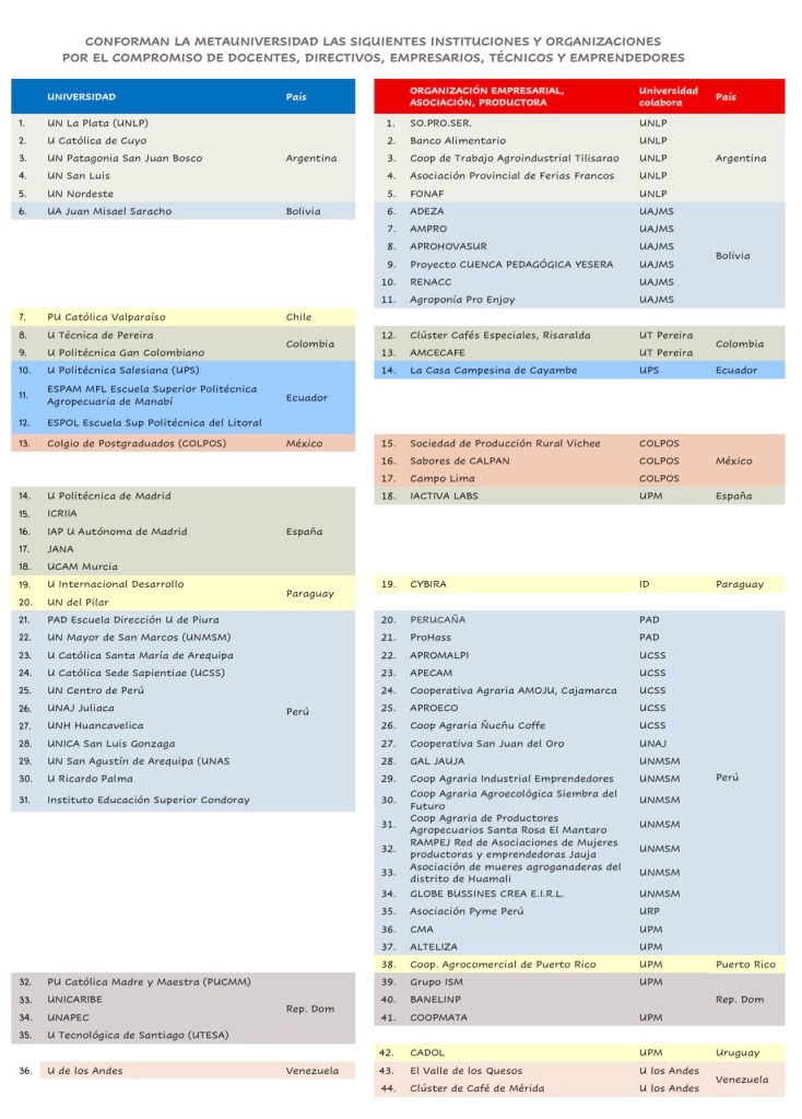 En octubre de 2016, la FAO seleccionó al Grupo de Investigación GESPLAN de la Universidad Politécnica de Madrid (UPM) para impulsar la docencia, investigación y vinculación con la sociedad en América Latina, Caribe y España, basándose en dichos principios. Esto se debe a los doctores especializados en el Área de Proyectos y Planificación en Desarrollo Rural, egresados de esta universidad, que aportan un enfoque innovador en el desarrollo de áreas rurales.